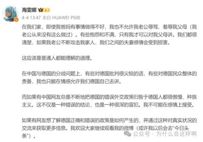 比如,在其置顶的微博中,就公开地宣称不允许中国人去指责德国,德国的问题只能她去讲