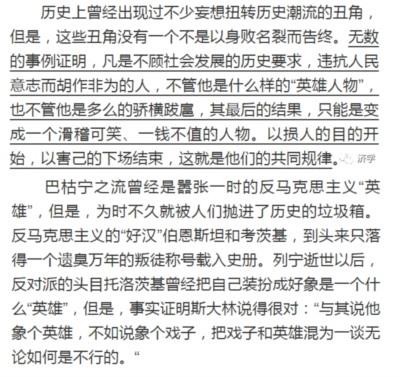 【无数的事例证明,凡是不顾社会发展的历史要求,违抗人民意志而胡作非为的人,不管他是什么样的“英雄人物”,也不管他是多么的骄横跋扈,其最后的结果,只能是变成一个滑稽可笑、一钱不值的人物。以损人的目的开始,以害己的下场结束,这就是他们的共同规律。】