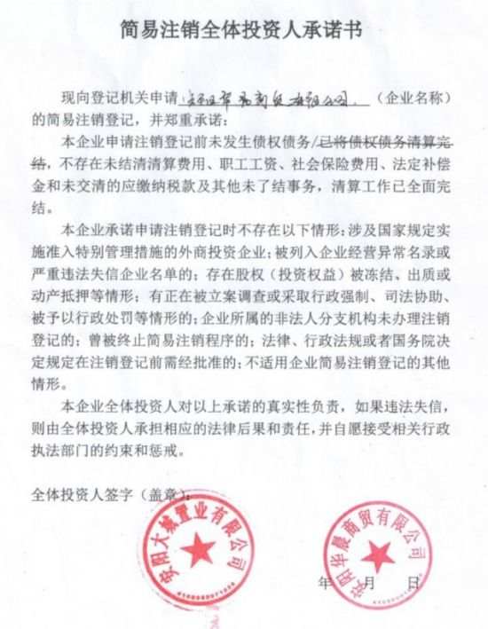 13:从这个:国企借钱1.3亿之后,逃债型注销的安阳华晨商贸的注销承诺书来看。这个国企安阳大城置业,根本就是知道的,并且故意协助:国企安阳华晨商贸逃债型注销。并且:国企安阳大城置业,伙同国企安阳华晨商贸,伙同国企安阳恒泰文旅,共同故意隐瞒:债权人们。它们:安阳华晨商贸国企借钱1.3亿之后逃债型注销,安阳恒泰文旅国企借钱2.54亿之后逃债型改制,安阳大城置业国企逃债型0元转股安阳恒泰文旅国企的5千万元股权的,表面上看是转让股权,实则是为了协助:安阳恒泰文旅国企逃债型改制。