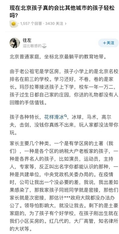 如果出生在其他省市(比如山河四省)必然要被分流职校的孩子,一旦投胎到北京家庭,则大概率能够上一个非常不错的大学,然后大学毕业后又能继续“先人一步”以“京源应届生”的身份捷足先登入职那些香饽饽的体制内岗位……