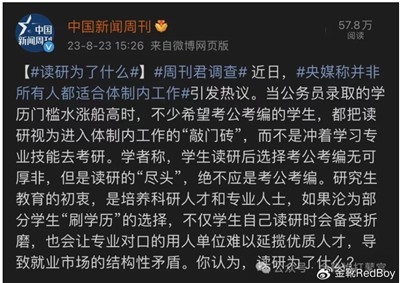 新闻②:央媒谈考公考编热潮,认为并非所有人都适合体制内工作,研究生不应跟风……