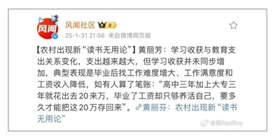 北京大学教育学院副教授刘云杉也曾有统计1978~2005年近30年间北大学生的家庭出身,结果发现:1978~1998年,来自农村的北大学子比例约占三成,到上世纪90年代中期开始下滑,2000年至2010年考上北大的农村子弟只占一成左右。