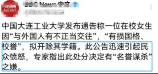 他们还说,大连工业大学的公告“迅速引起民众愤怒”,另有“专家”指出“此处分决定有‘名誉谋杀’之嫌”。敢问BBC,你们哪只眼睛看到“民众愤怒”了?要说愤怒,民众愤怒的对象也是那些吃李某某“人血馒头”的媒体和自媒体,他们要是不炒作,这点破事能惊动远在万里之外的BBC?