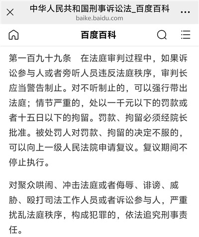 1、该条款的前置条件为“法庭审判过程中”,而杨宝花找法官理论是庭审结束的第二天,地点不是在法庭而是法院执行大厅,这能构成“违反法庭秩序”吗?