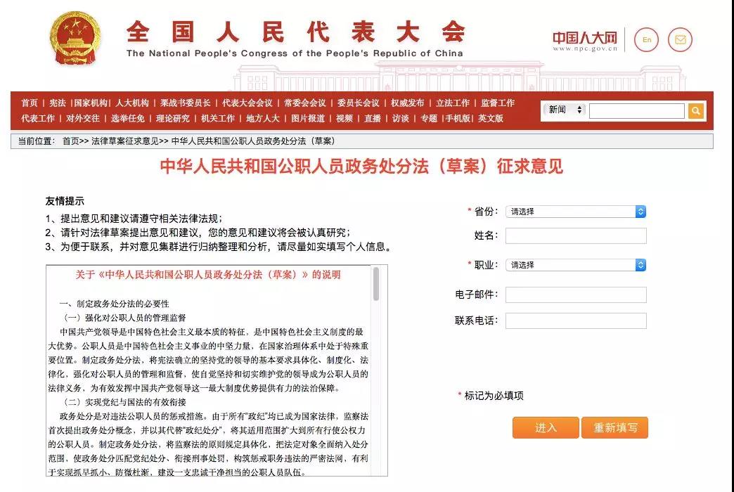 中华人民共和国《公职人员政务处分法(草案)》正在征求意见,截至日期是11月6日,我们希望在第30条论述的开除公职底线中,增加“反对人民民主专政”比较妥当。相同观点的广大公民可以在人大网该草案征求意见网页中行使自己的权力。