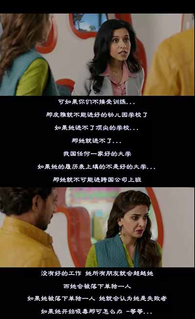 《起跑线》中的米塔作为一个中产主妇的说法很有代表性,她希望她的孩子进入好的学校,害怕自己的孩子在将来的竞争中失利而进入底层,也因此绞尽脑汁地希望自己的孩子进入top5中。而进入这些学校的必要条件则是孩子接受了大量的素质教育。
