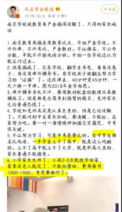 另一方面,家长们让孩子参加的培训班,大多数也是为了增加孩子在将来的竞争力,即名校需要什么,就培训什么。参加奥赛获得奖项,进入游学营增长见识,学习乐器培养兴趣爱好,参加辩论锻炼思辨能力,这些都能在日后的简历中写下光辉亮彩的一笔。而素质教育中的首要的一块——思想道德素质——却因为进入名校时无法考核这一项而很大程度上被忽略了。孩子进行素质教育为的是在择校或者就业这样的“考试”中获得更大的竞争力,明面上是素质教育,骨子里却仍是应试教育。而且这样的素质教育缺失了思想道德素质这一块,所培养的学生也就不可避免地成为了“精致的利己主义者”。