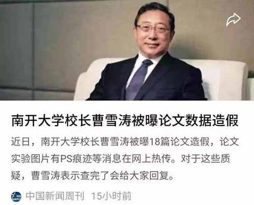 曹雪涛做到了校长的位置,他本人想必还真的是学术界的大牛,亲自写的论文就算真有造假的但也应该不至于全是假的,可能真的还有一些顶尖的研究。这次被爆PS的论文里,有一些他是通讯作者,什么意思呢?通讯作者往往指课题的总负责人,承担课题的经费、设计、文章的书写和把关,是文章和研究材料的联系人,担负着文章可靠性的责任。也就是说,被爆PS的文章也许不是他本人写的,但他绝对承担着重要责任。