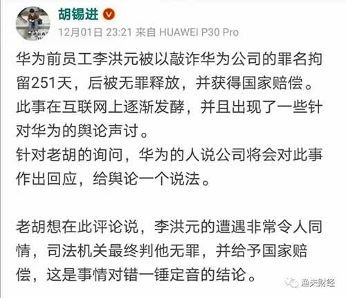 直到12月2日晚,华为官方才发出申明,但依旧没有道歉。