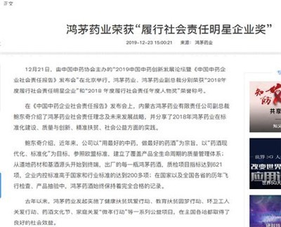 鸿茅药业成“社会责任明星企业”,咋评出来的?