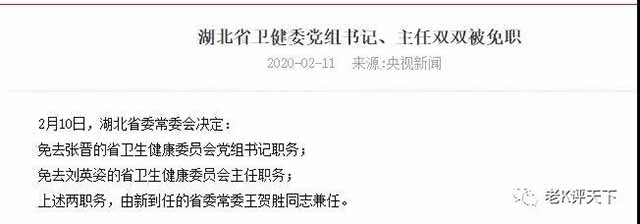 第四,就在中纪委发表文章的前一天,湖北省卫健委党组书记和主任被免职。
