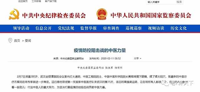 2月11日,中央纪委网站刊发了《疫情防控阻击战的中医力量》,仔细看了一下这篇文章,总结出两条非常关键的信息。