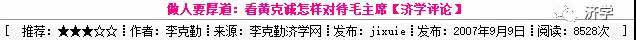 这篇文章是我2007年9月9日整理的,其实主要内容都是来自开国大将黄克诚同志的原文。可以说,我是比较早在网络媒体谈论黄克诚这篇具有里程碑意义的雄文的。尽管他是在1980年作的这个讲话,但他为毛主席声辩的勇气,令人感佩。那年我刚上大学,记得还是父辈在谈论黄克诚同志的高风亮节,关键时刻坚持真理,讲真话,说实话,赢得了党内同志的一致好评,给我留下难忘印象。父辈评价人是,对于那些人品不错,又能影响别人的人,喜欢用厚道这个词,所以我选了这个标题。