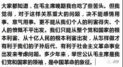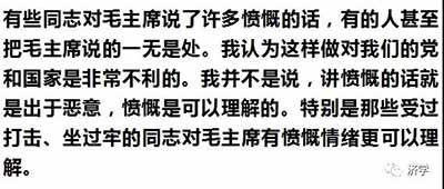 1980年11月下旬黄克诚在中共中央纪律检查委员会召开的第三次贯彻《关于党内政治生活的若干准则》座谈会上讲话的第一部分,题目为《关于对毛主席评价和对毛泽东思想的态度问题》。