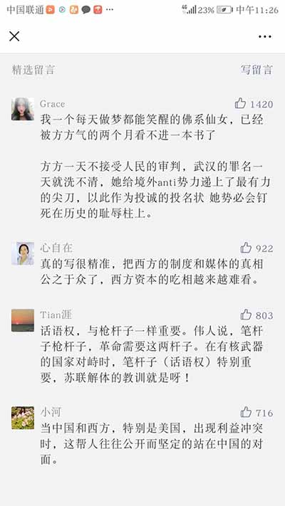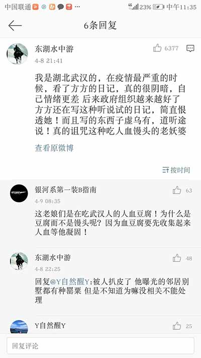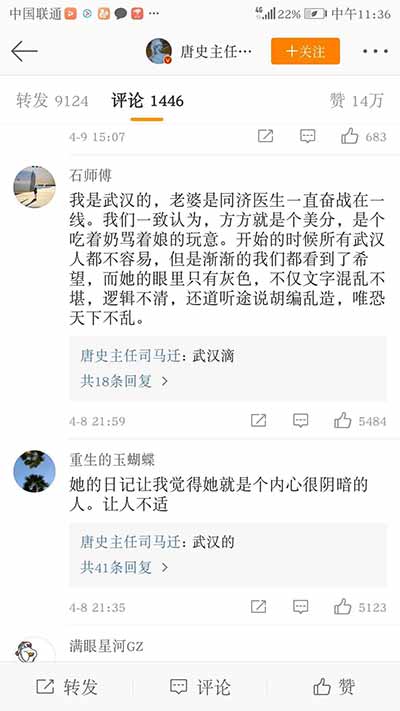 这才是大多数普通武汉市民的心声。他们的话语权很微弱,但他们对方方的日记忍无可忍,自发地站出来,为武汉发声。