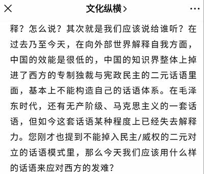 文化纵横的采访者对姚洋的意思有更明确的概括: