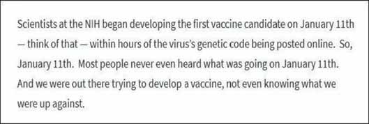 此话一出,“1月11日”这个时间点立刻引起了人们的关注。1月11日,美国开始研发疫苗,这比3月中旬美国新冠疫情暴发整整早了2个月。