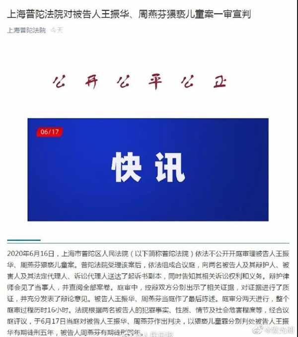 新城控股原董事长王振华强奸幼女案判决结果出来了: