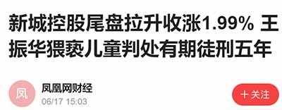 “以猥亵儿童罪分别判处被告人王振华有期徒刑五年”——这个结果谈不上大快人心,新城控股今天收盘时还涨了2%。