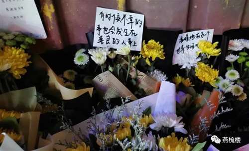 围挡被推倒后,前来吊唁的鲜花越来越多。