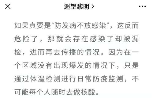 “严防死守”并不意味着举国上下同等地“紧绷一根弦”、影响正常的工作和生活,重要的是守好国门、堵住源头,早发现、早隔离、早治疗。而这个过程中,对“自由”的部分限制以及对“流动性”的部分牺牲是在所难免的,然而这个代价要远远小于“全面失守”所带来的损失。