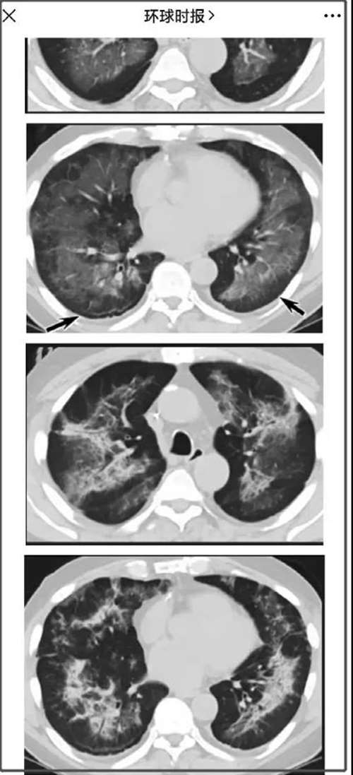 而根据现在一些媒体,拿着当时电子烟肺炎病人的一些CT照片照专家咨询
