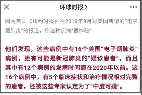 当时美国突然爆发一种“不明肺炎”,在找不到病因后,美国竟然草率的仅仅因为很多病人都使用电子烟,就把该病例甩锅给电子烟。