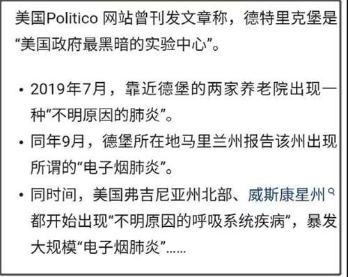 这使得,电子烟肺炎跟德特里克堡美军传染病研究所,也有着说不清道不明的联系。