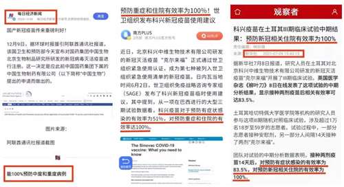 毕竟前期对于我国的新冠疫苗媒体及专家给老百姓传达的信息都是让老百姓“信心十足”的。当然,后来出现几次接种过疫苗仍然感染的情况后,媒体和专家便开始多次向公众解释:疫苗不是百分百防感染但可以防重症,而且此前多家媒体发布的相关文章中都出现过类似“100%防重症”的字眼。