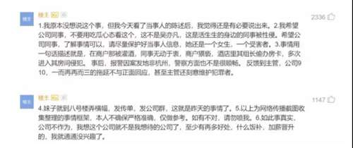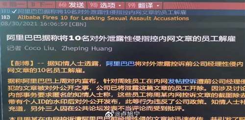 阿里女员工周某在内网发表长文控诉自己领导要求陪客户喝酒,被灌醉后,被客户猥亵,之后被送到酒店后,领导进出其房间4次,并将其强奸。