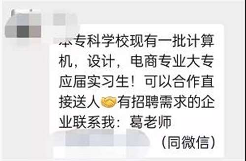(2021年9月7日西安某人力资源交流群里贩卖实习生的信息)