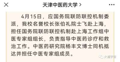张伯礼4月15日来上海,没有任何媒体报道。也就在4月21日下午,天津中医药大学的公众号发布了这个消息,媒体才开始报道此事。