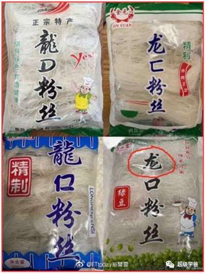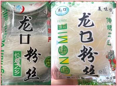 这家粉丝企业不仅已经注销两年,产品也是山寨货,冒充龙口粉丝,有的叫龍仁粉丝(仁字写得像“口”字),有的叫龙字多了两撇的“龙口”粉丝……