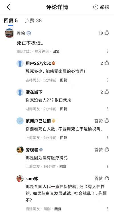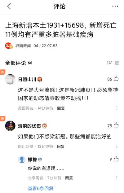 今天,上海公布昨日新增死亡11例,笔者总算看到“人话”在评论区占据了主流,而那些鼓吹“应死尽死”的社会达尔文主义成了“过街老鼠”: