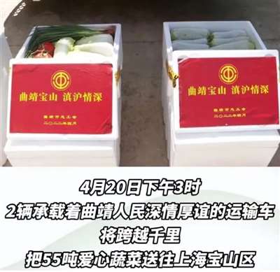 这一查果然有收获,近日,云南曲靖确实向上海宝山区,捐赠了55吨爱心蔬菜。
