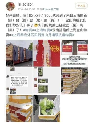 试想一下吧,一个50岁的大叔,以一己之力搬运走了1吨多的物资,连夜撕毁了捐赠标签,并且在上海层层封锁、连京东都免不了磕磕绊绊的路况下,将菜品成功运到另一个区,打入业主群,顺利发起了一场无本万利的团购活动。