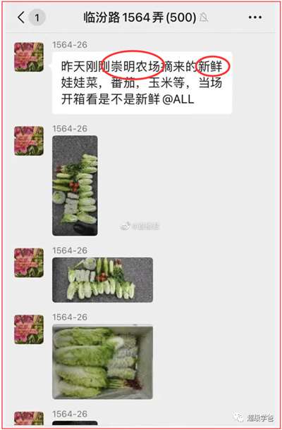 事情是这样的。4月24日,上海静安区彭浦新村街道的某小区群,有一名自称人民教师的群友,在小区群里兜售物资,说是崇明新采摘的蔬菜。
