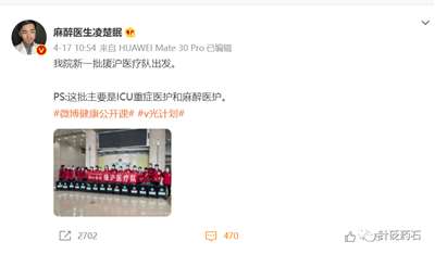 17日,武汉时期参与过插管小分队的麻醉医生凌楚眠发文,他所在医院,武汉同济附属协和医院新一批医护出征——这一次是重症和麻醉医护。
