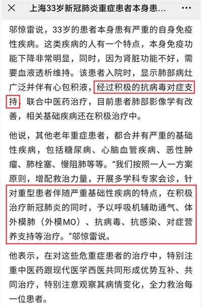 我们是第一支试遍了各种抗病毒药物的医疗队伍,洛匹那韦、利托那韦、阿比多尔、羟基氯喹,比较了各种不同的抗病毒药物,没有强有力的证据证明我们可以推荐任何一种。