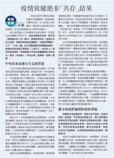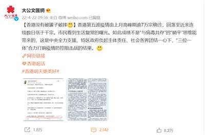 大公文汇网直接发了篇文章,称我们“没有破罐子破摔”,且着重强调了目前HK第五波疫情回落,并不是“共存”的结果,而是中央、港府、社会各界三位一体合力积极干预的战果。