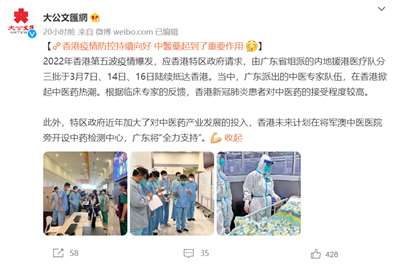 德叔率队到达4天后,HK卫生局表示,中医全面参与包括预防、治疗到康复的所有环节。港府则是在这前后陆续发放了100万盒国家捐赠的各类中成药(有大量市民感染后无奈居家“自疗”),之后,林郑表示,希望再派中医专家赴港,26日启德方舱把1200张床位中的800张交给中医。