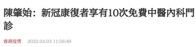 然后,HK出台的举措是康复者在出院或完成隔离后6个月内,享有最多10次的免费中医内科门诊,以帮助其尽快恢复。