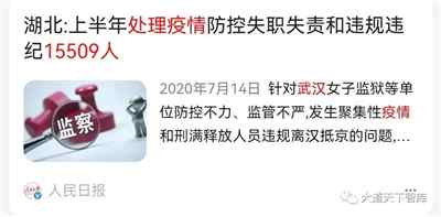 至2020年7月,湖北总计处理疫情防控失职人员15509人。