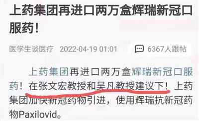 上海本地的自媒体反过来却搞起了标题党,说什么“张伯礼来了,上海的死亡人数就增加了”;他咋不取标题,“上海再进两万盒辉瑞,死亡人数就增加了”?