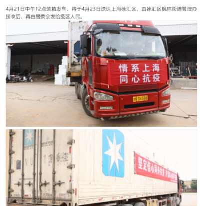 该捐赠物资是4月21日中午出发,于4月23日抵达徐汇区,由徐汇区枫林街道管理办接收(见评论区)。
