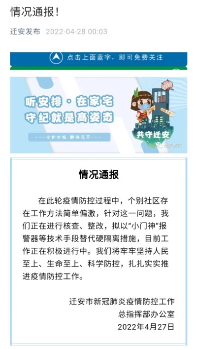 迁安“个别社区”(官方通报语)之所以对居民采取收钥匙、绑铁丝、钉铁钉这样简单偏激的行为,或许的确事出有因。