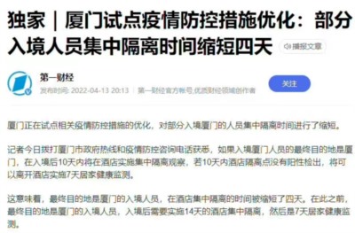 前不久传出八个入境口岸城市试点缩短“封控期”和“入境隔离期”的消息,而且作为口岸城市厦门已经切实操作了,将“入境隔离期”从“14+7”缩短为“10+7”及“10+4”。
