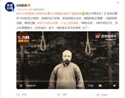 今天,李大钊同志英勇就义95周年,登上了热搜,这在几年前,是很少见的。