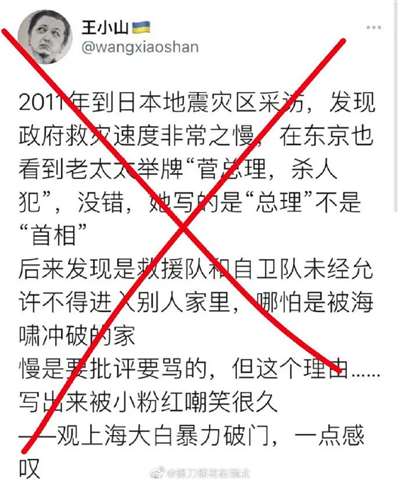 去日本的公知王小山发推说:“2011年到日本地震灾区采访,发现政府救灾速度非常之慢……后来发现是救援队和自卫队未经允许不得进入别人家里,哪怕是被海啸冲破的家……”我想说,对对付,太对了,风能进雨能进,就是日本自卫队不能进,日本大地震过去11年了,还有十几万日本难民无家可归,开心的不要不要的!