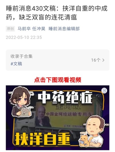 不过,这一次马前卒矛头对准了所有的中医药: